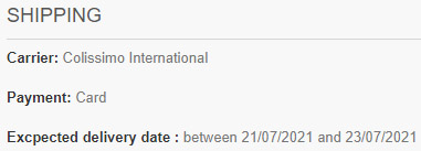 - il tempo di trasporto verso la tua destinazione a seconda del corriere scelto